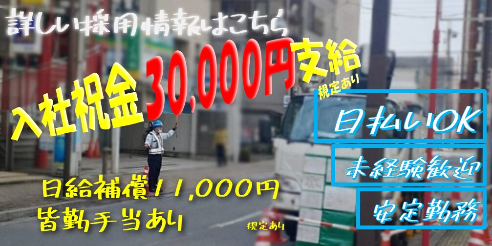 通信設備工事に同行して、現地の交通誘導業務を行います。 <仕事内容>※詳細につきましては面接時にご説明します。 【1】宅内工事班の工事車両(高所作業車)の交通誘導 【2】宅内工事班の工事車両の交通誘導 【3】現場調査班の工事車両の交通誘導 <大まかな1日のお仕事の流れ> |
